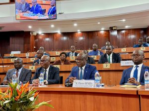 M. Pierre Nโgou Dimba, ministre de la Santรฉ, de lโHygiรจne publique et de la Couverture maladie universelle, mandatรฉ pour reprรฉsenter la ministre Nassรฉnรฉba Tourรฉ .